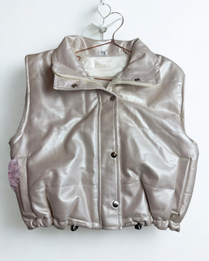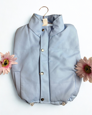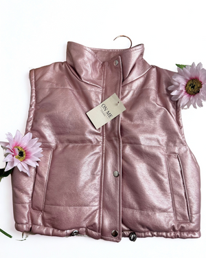 Chaleco en cuero sintético, perfecto para darle un toque urbano y moderno a tus looks de temporada. Con diseño acolchado, cierre de broches metálicos frontales y bolsillos funcionales, ofrece estilo y comodidad en una sola prenda. Su ajuste en la parte baja permite adaptarlo a tu silueta con mayor confort.